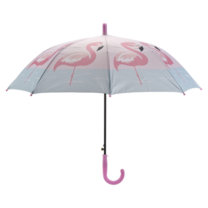 Umbrela rPET Flamingo - copil 83 cm este accesoriul practic pe care te poti baza in orice zi cu vreme schimbatoare. Rezistenta, ușoara si simplu de folosit, umbrela te protejeaza eficient de ploaie si vant. Un must-have pentru geanta, birou sau masina.